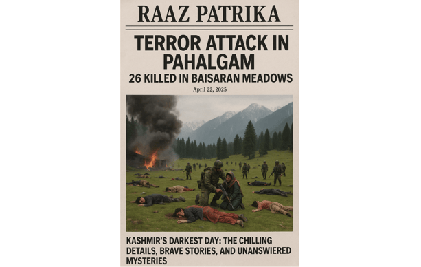A horrific terror attack on April 22, 2025, shattered the serene Baisaran meadows in Pahalgam, claiming 26 lives, including tourists and a heroic local. Explore the chilling details, brave stories, and unanswered mysteries of this tragedy on Raaz Patrika, where we unravel the facts behind Kashmir’s darkest day.